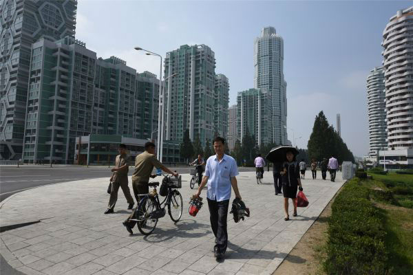 平壤今年新落成的黎明大街街景(摄影 程大雨)