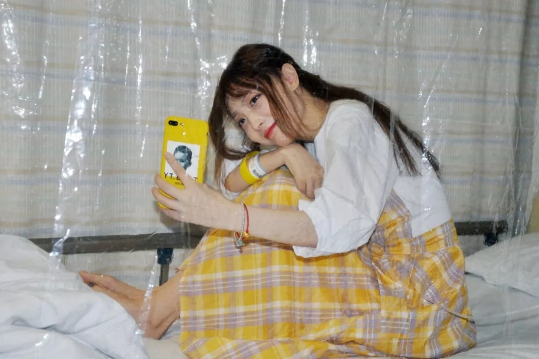 璎璎在病床上美美地自拍(图片来自璎璎微博)