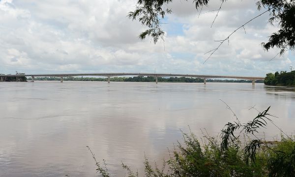 老挝占巴塞省东孔县拍摄的东孔岛湄公河大桥。 新华社图