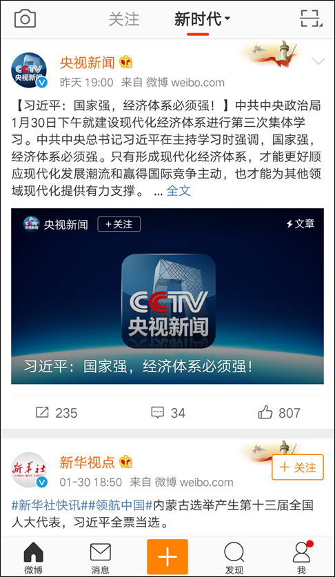 关键字:bte365娱乐线2月1日消息,今日微博在首页热门区域新增了新时代频道,该频道以中央媒体、政务微博等发布的内容为主。