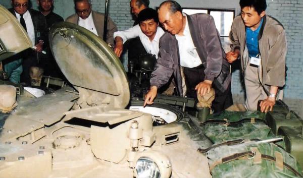 90年代出初,急于出手手中各种先进装备的俄罗斯把包括T-80U在内的先进装备都提供给中国,图为当时的军委副主席张万年同志视察T-80U坦克