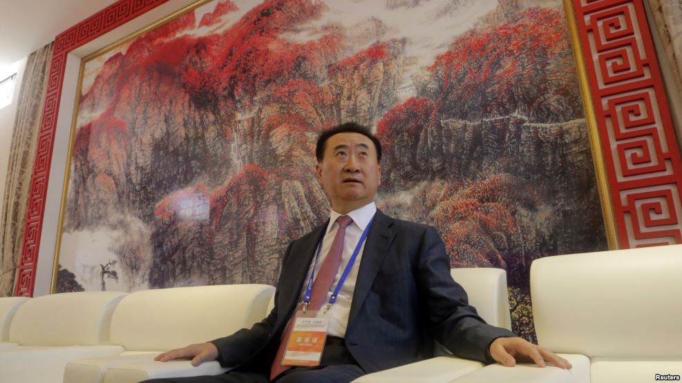 中国大连万达集团董事长王健林上周在美国加州洛杉矶县艺术博物馆向包括洛杉矶市市长埃里克·加希提与美国电影艺术与科学学院院长谢丽尔·布恩·伊萨克斯在内的约数百人发表演讲。