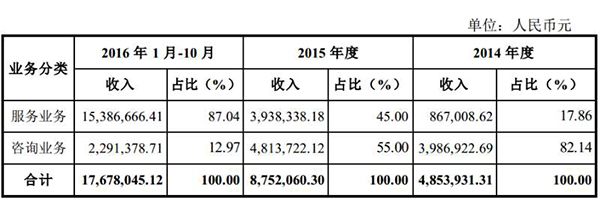 但是同时值得注意的是,公司的“咨询类”业务没什么起色。但是服务类业务收入从86万上升到了1500万,至于是什么样的业务就不得而知了。