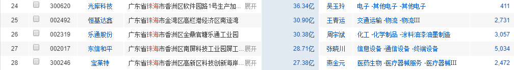 来自同花顺的数据显示,A股市场上,注册地址在珠海的上市公司有28家,涉及的行业比较丰富,包括医药生物、信息设备、信息服务、食品饮料、电子、家电、房地产等。