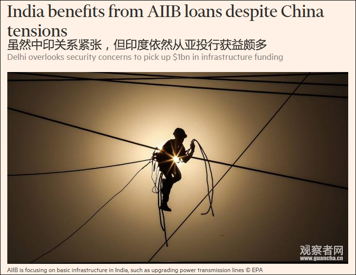 从2016年至今,印度已经将亚投行承诺资金的四分之一收入囊中。在亚投行承诺用于亚洲基础设施建设的43亿美元资金中,超10亿美元将归印度所有。《金融时报》3月19日曾报道称:“虽然中印关系紧张,但印度依然从亚投行获益颇多。”
