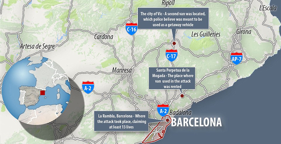 西班牙巴塞罗那恐袭造成13死100伤 两嫌犯被捕