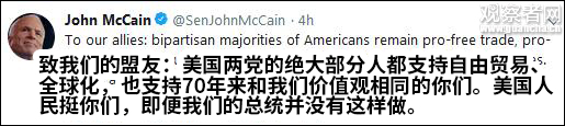 而美国国内也不乏反对者。民主党自不必说,众议院领袖南希·佩洛西(Nancy Pelosi)和纽约州参议员查尔斯·舒默(Charles Schumer)等接连在社交媒体上表示抗议。另一方面,共和党参议员约翰·麦凯恩(John McCain)更直接代表“驴象两党”声援“盟友”。“美国人民挺你们,即便我们的总统并没有这么做。”