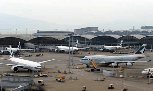 资料图片:停靠在香港国际机场的国泰航机。新华社记者黄本强摄