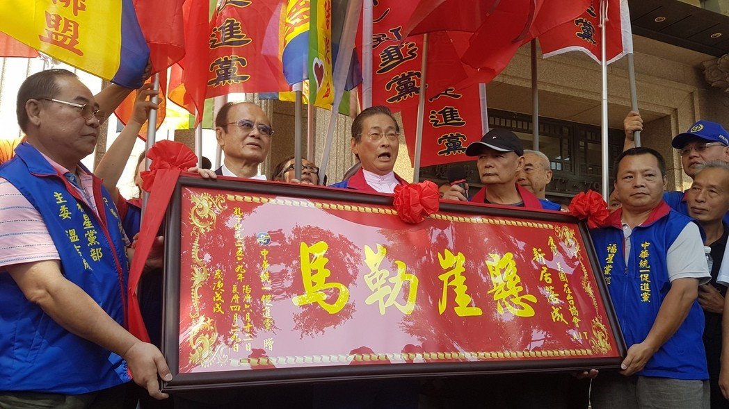 张安乐率众到场后,手持“悬崖勒马”匾额,他表示,要把匾额送给AIT,希望美国人不要在两岸制造事端,否则倒霉的是台湾老百姓。也有团体表达反对美对台军售,呼喊口号“美国炮弹要你滚蛋”。警方担心发生冲突,以警力组成人墙,搭配铁马护栏及改道牌,将意见相左群众隔开。