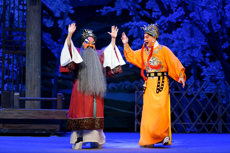 我们常常调侃戏曲舞台上是“乱穿衣”,现在戏曲舞台上的服饰以宋朝和明朝服饰为蓝本,虽然经不住历史的推敲,但得到了一个特殊的美学综合性的展现,符合中国戏曲舞台上的审美需求。《贞观盛事》这出戏因为是新编戏,从一开始我们在服装设计上就参考了历史上唐朝的服装样式,同时又照顾到戏曲舞台的美学传统,有些角色的服装依旧保留了水袖。