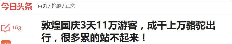 - 原标题:敦煌国庆3天接待11万游客,累坏了骆驼,你怎么看?