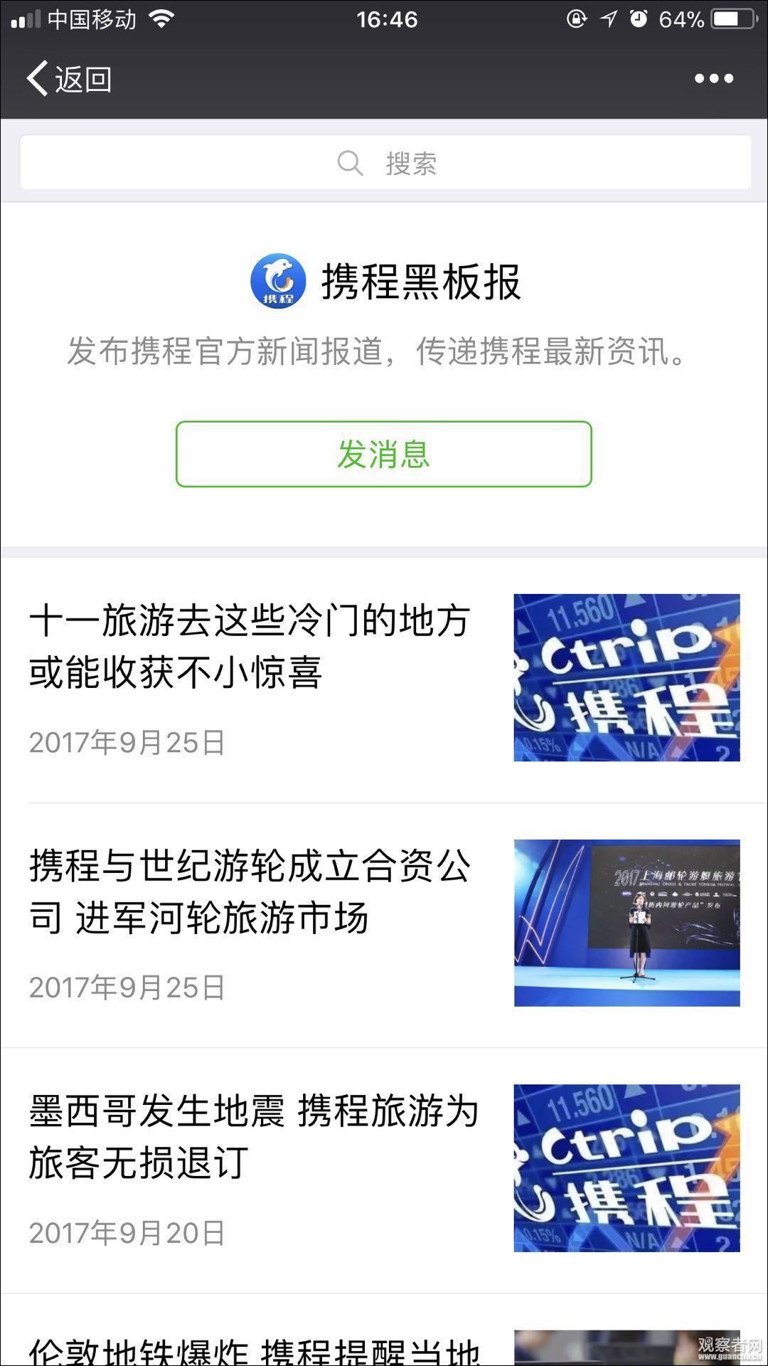 不过,据bte365娱乐线10月8日发稿前查询,“携程黑板报”公众号上没有10月7日的这份声明;目前显示的最新消息发布时间为9月25日。有媒体人为,这份声明疑似为“关键字回复”。