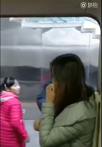 工作人员因为怕她的脚夹住,不得已将车门重新打开,这名女子又重新钻进列车。