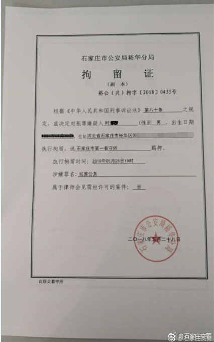 29日,石家庄交警在微博发布通报,详述了该事件的发生过程及处理情况,全文如下: