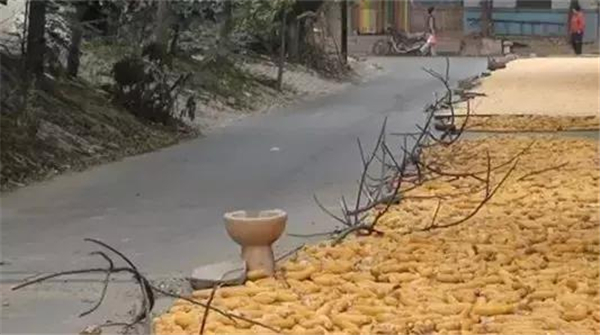 每到农忙时节,一些农民为了方便,会把不方便用机器收割的麦子摊到马路上,让过往车辆碾压帮助打谷收麦,俗称“马路打场”。