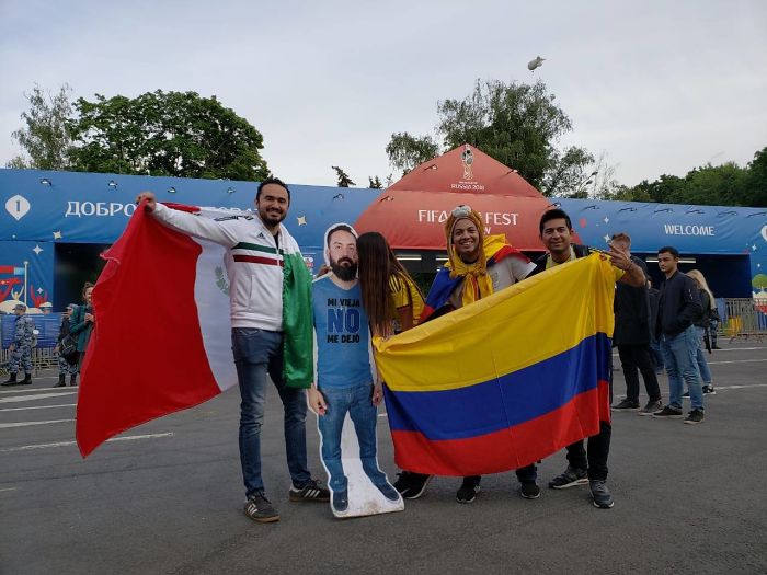 所幸他的小伙伴比较仗义,给他裁了一个等身大小的硬纸板画像,硬生生将其扛到了莫斯科。有了新的“替身”,这位墨西哥人似乎也能体验到作为世界杯球迷的顶级享受,“玩”得不亦乐乎。